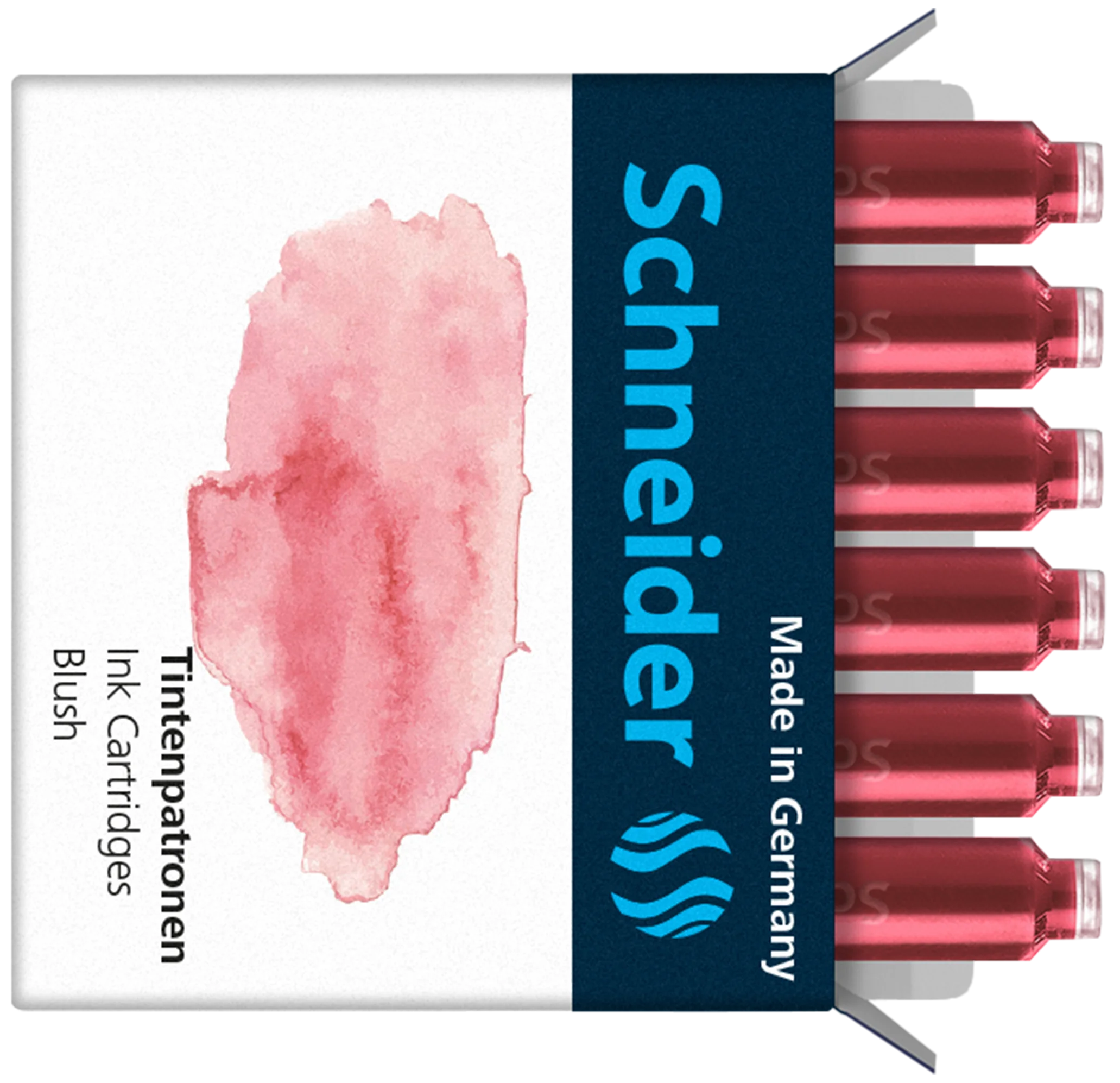 Cartouches d'encre pastel unique en couleur d'encre \"blush\", avec lesquelles chaque style d'écriture prend tout son sens et il n'y a pas de limites à la créativité. Convient aux produits Schneider et à la plupart des stylos à plume et rollers à cartouche. Une boîte avec 6 cartouches d'encre. Qualité made in Germany.