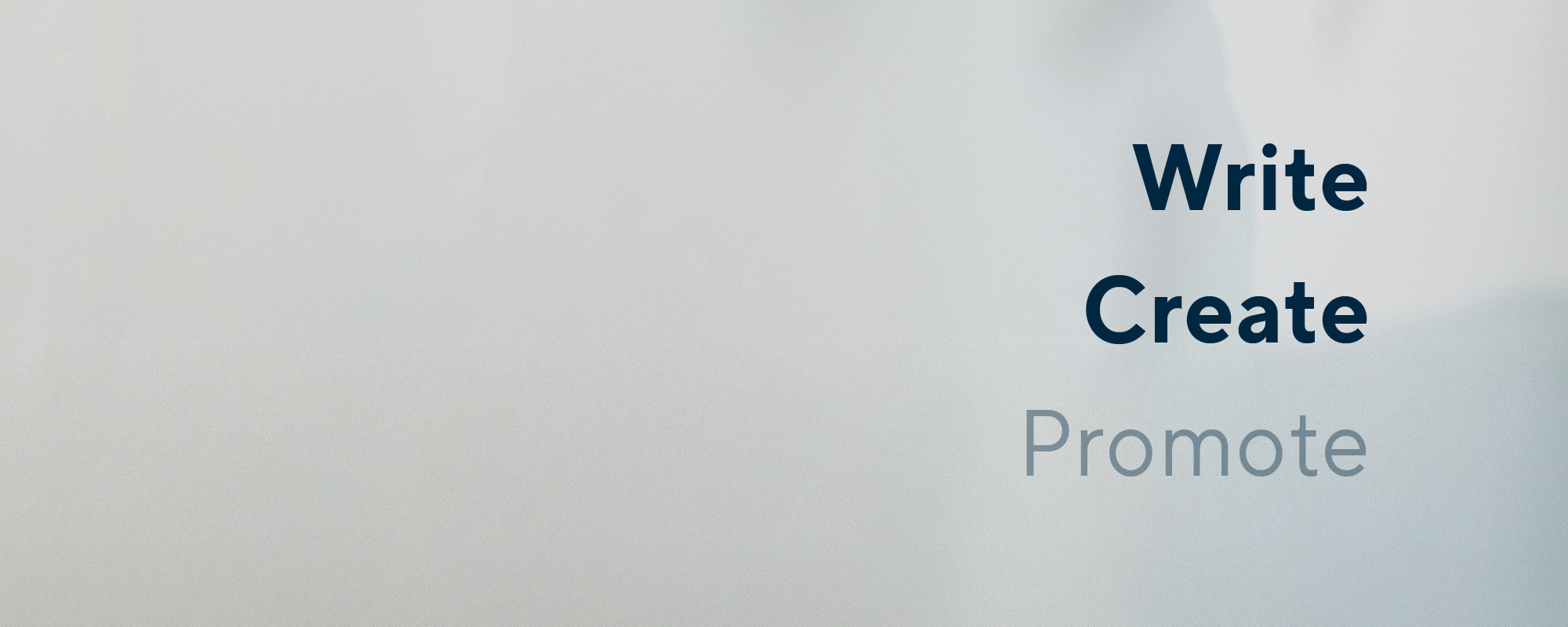 Die drei Produktbereiche Write, Create und Promote stehen rechtsbündig untereinander. Die Bereiche des Sortiments, die im Fokus der Kommunikation stehen, werden in Bold gesetzt. Die anderen Bereiche treten durch den Regular-Schnitt und eine Transparenz visuell in den Hintergrund.