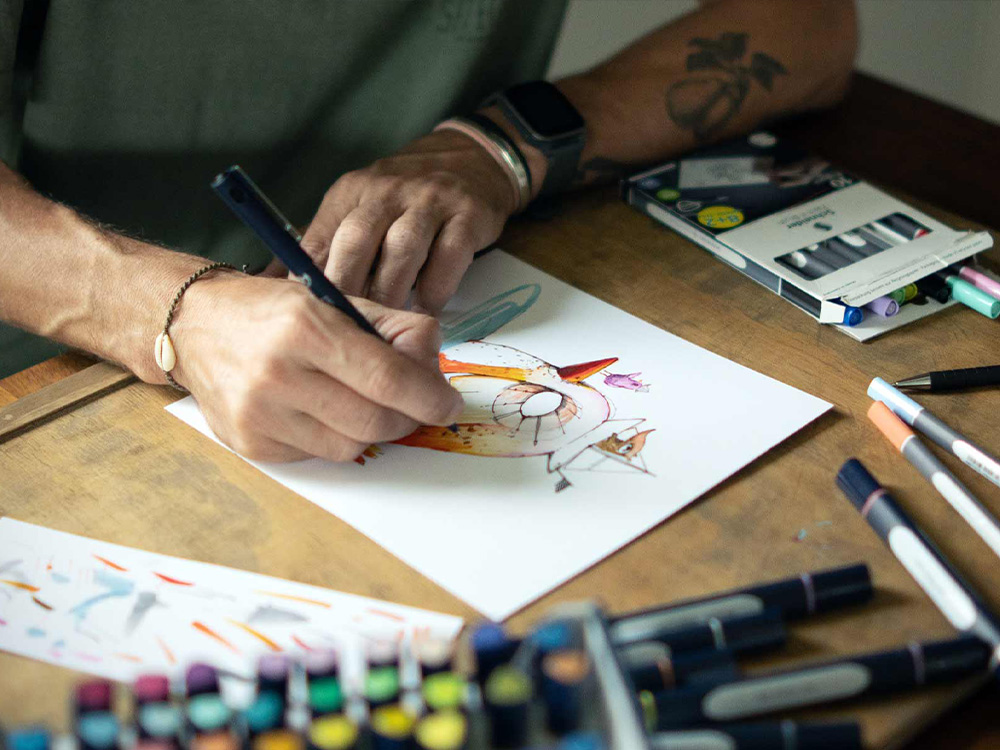 In unseren Bildmotiven zeigen wir lebensnahe Situationen von Menschen, die mit unseren Schreibgeräten arbeiten, leben und kreieren – ungestellt, spontan und reportagehaft. Interessante Bildausschnitte, spannende Kompositionen und das Spiel mit Schärfe und Unschärfe sorgen dabei für eine hohe Bildästhetik.