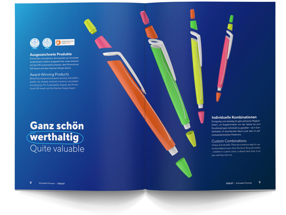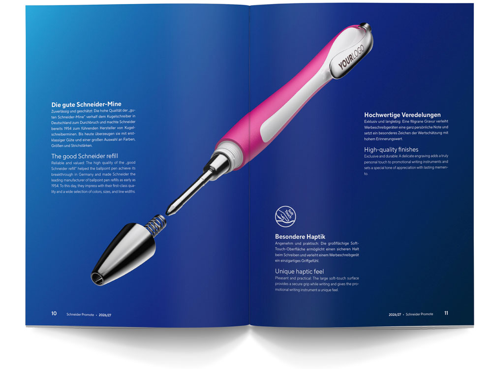 Hochwertig, fokussiert und komplett individualisierbar: Wir rücken ganz nah an unsere Produkte heran und zeigen auf, welche Qualitäten in unseren Werbeschreibgeräten stecken.