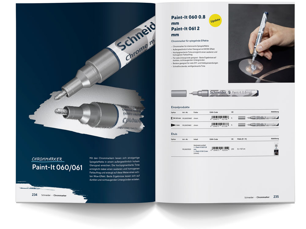 Wenn wir die Hochwertigkeit unserer Schreibgeräte besonders unterstreichen möchten, nutzen wir Premium Visuals. Vor dem Hintergrund unserer Unternehmensfarben rücken wir ausgewählte Produkte oder Produktdetails in den Fokus der Aufmerksamkeit – hochästhetisch und stilvoll. Aufgrund dieses exklusiven Charakters werden Premium Visuals hauptsächlich für Produktneuheiten oder sehr prominente Flächen wie z. B. Kapiteltrenner eingesetzt. Das bedeutet auch, dass nicht für jedes Produkt Premium Visuals vorliegen.