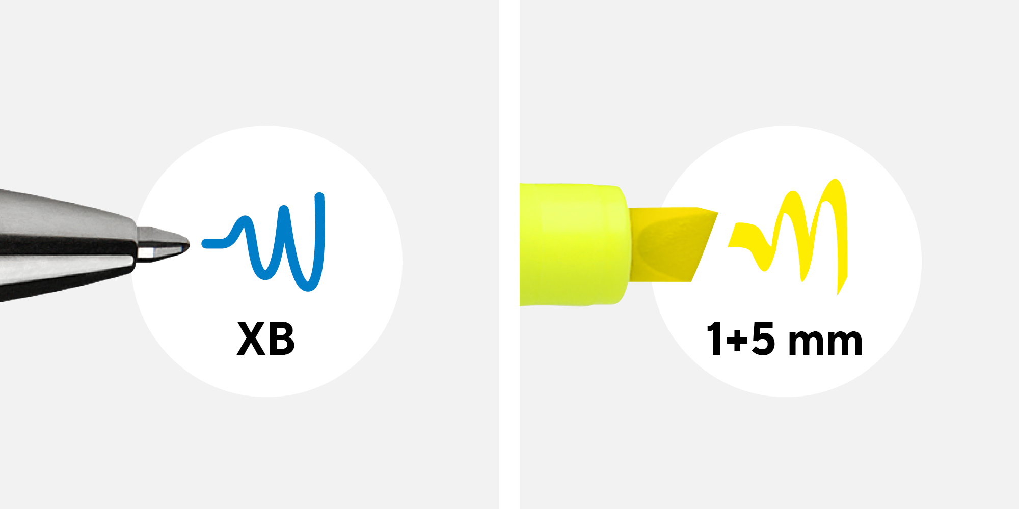 Hier wird immer eine Stiftspitze in Originalgröße in Kombination mit einem stilisierten Strich gezeigt. Diese Visualisierungen werden insbesondere auf Verpackungen oder am Point-of-Sale eingesetzt.