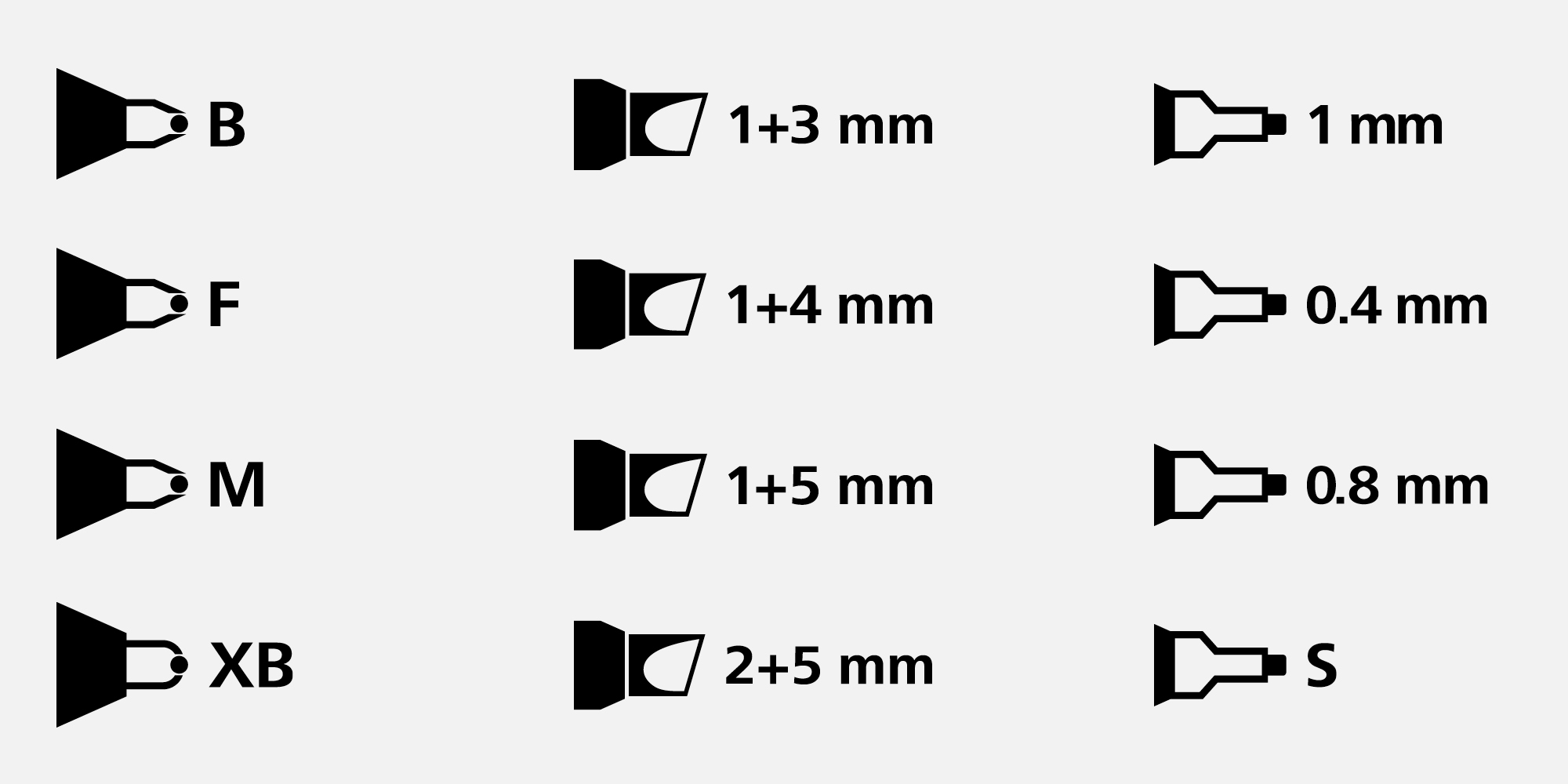 Die Art, Stärke und Farbe von Stiftspitzen lassen sich mit diesen Icons darstellen.