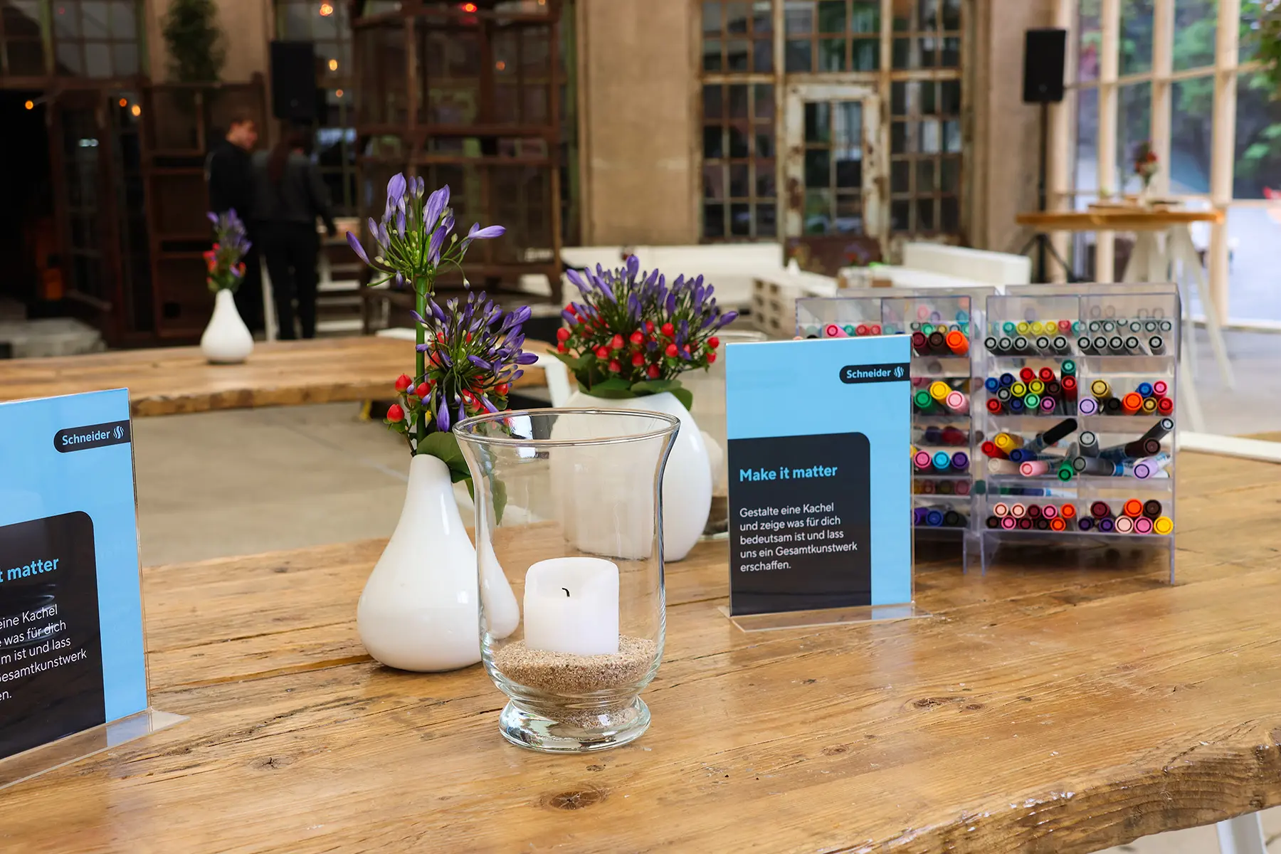 Le divertissement était également au rendez-vous. Le magicien Johnny Diabolo de Salzbourg a émerveillé les invités, tandis que l’artiste amateur Bianca Weber a encouragé les employés à exprimer leur créativité avec les produits Schneider.