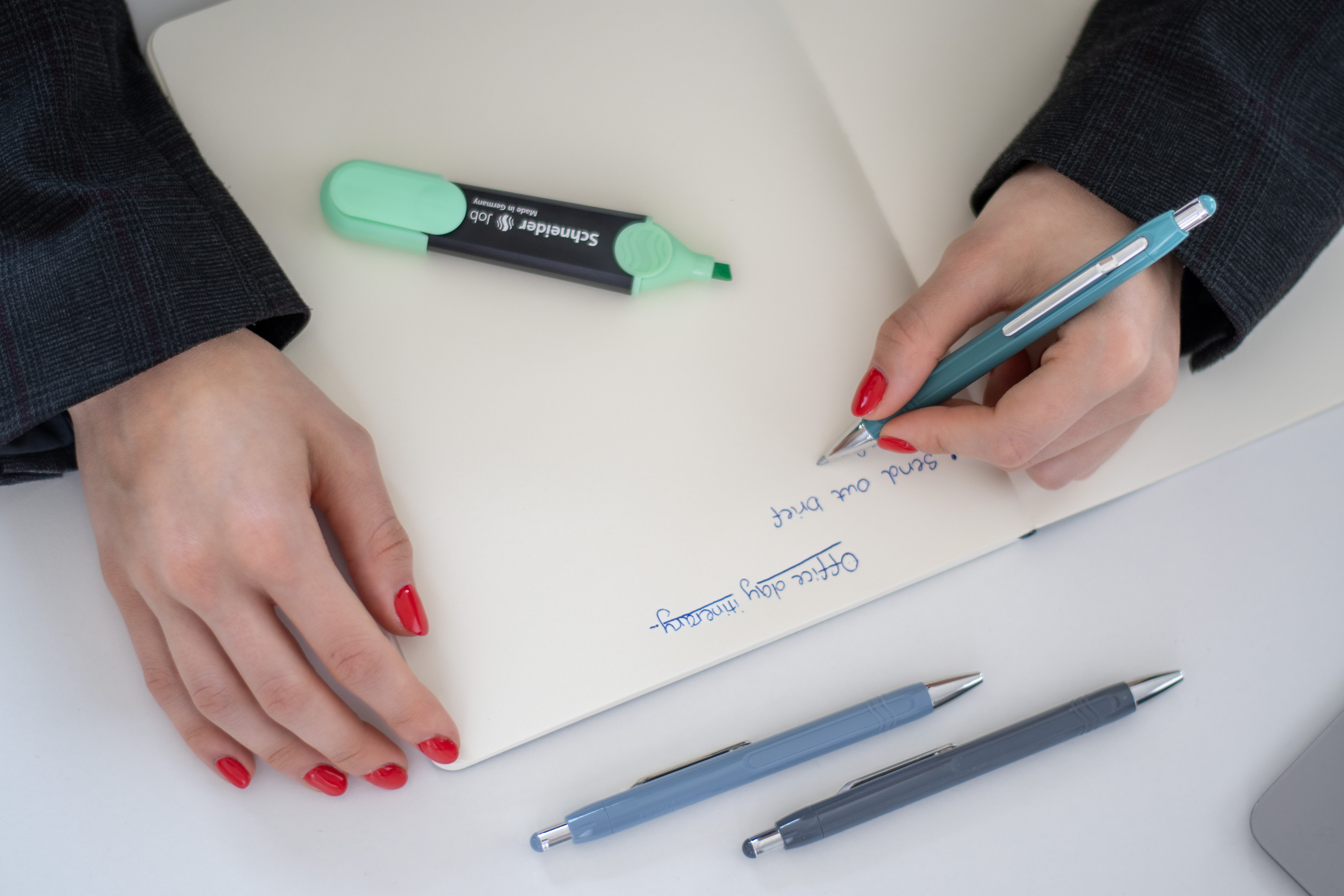 L’Epsilon séduit également par son apparence, alliant ergonomie et esthétique. Le clip en métal partiellement enfoncé confère au stylo à bille une allure haut de gamme et le maintient solidement dans un carnet, une poche de chemise ou un dossier. Les rayures gommées en couleurs assorties apportent à la fois une touche visuelle et une valeur fonctionnelle. Un atout particulièrement remarquable : une triple ligne en plastique souple antidérapant autour la poignée. Il améliore non seulement l’ergonomie, mais fait aussi subtilement référence au logo de la marque Schneider.
