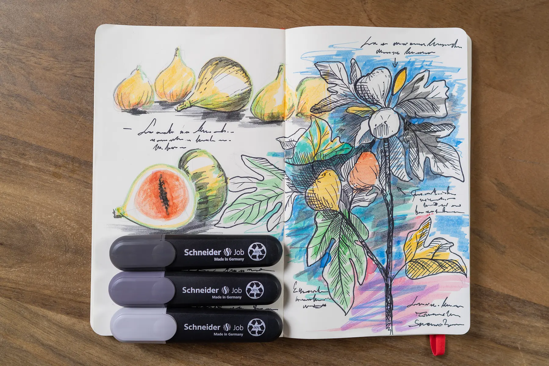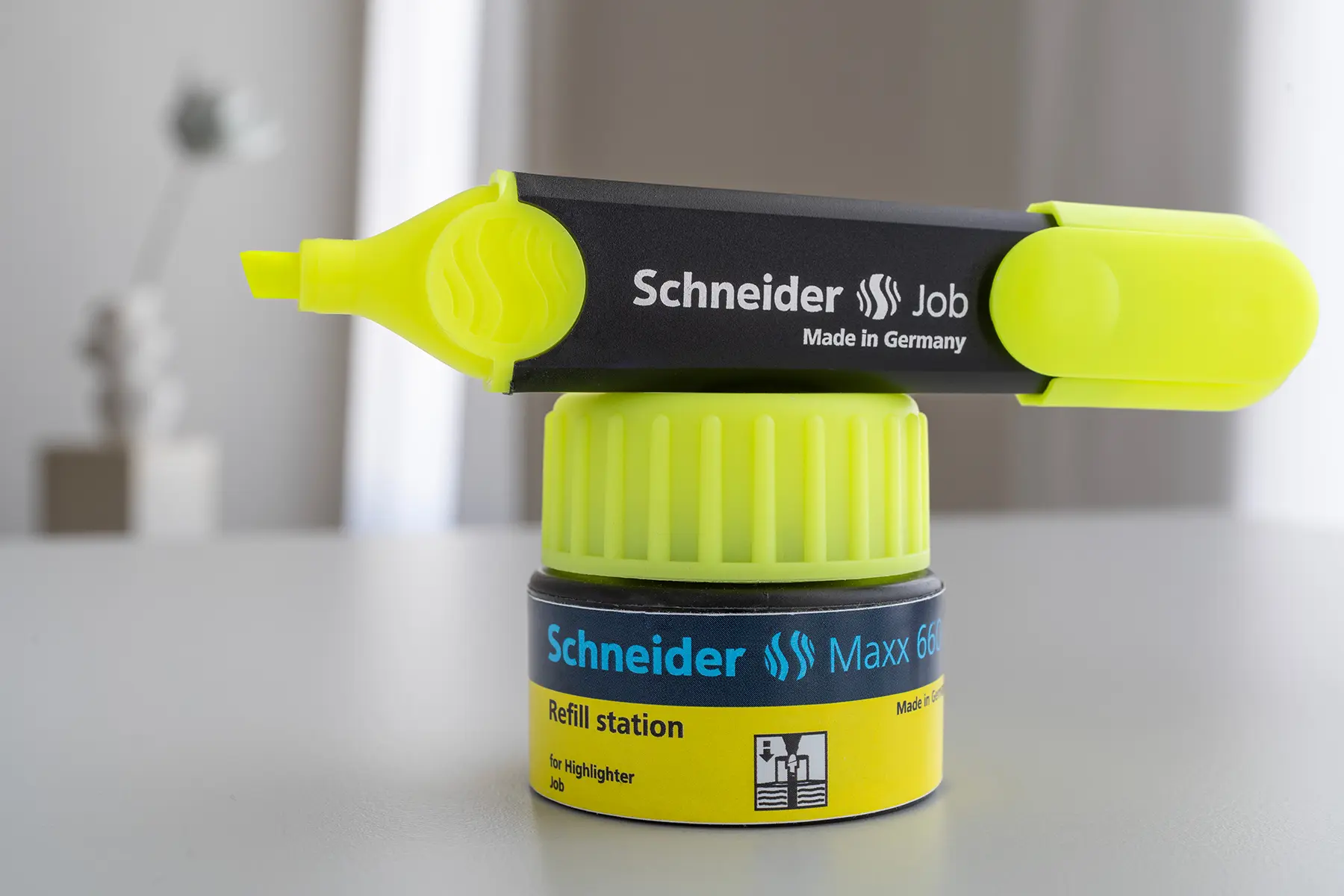 Der Textmarker Job zeichnet sich durch seine biobasierte Tinte aus, die besonders umweltfreundlich ist. Die Rezepturen der Tinten enthalten einen hohen Anteil an natürlichen Rohstoffen, die perfekt miteinander harmonieren, um eine herausragende Tintenqualität zu gewährleisten. Die Tinte ist geruchlos, schnell trocknend, auswaschbar und lichtbeständig.
