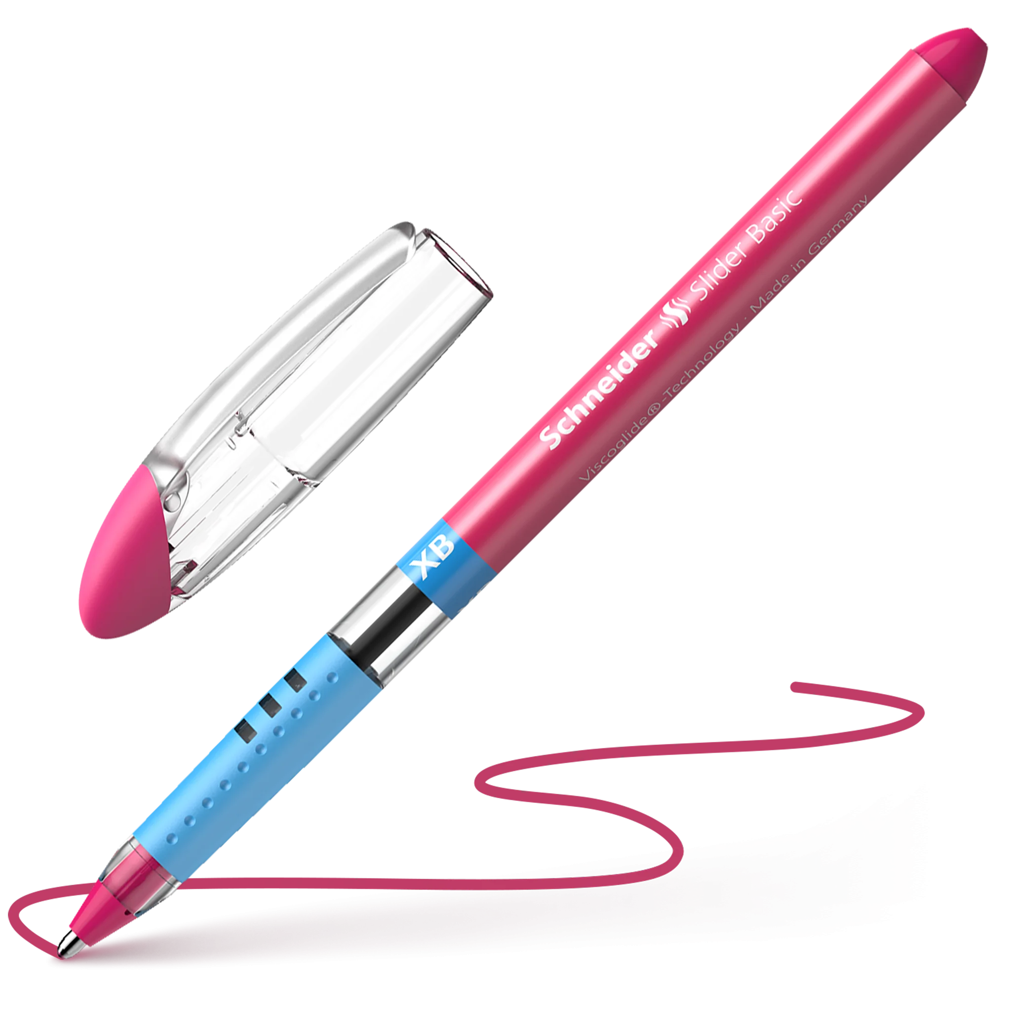 Kugelschreiber mit Viscoglide®-Technologie für außergewöhnlich weiches und gleitendes Schreiben. Schreibfarbe pink. Strichstärke Extrabreit (XB). Die Schrift trocknet schnell - auch auf glattem Papier - und bleibt sogar bei anschließendem Markieren mit Textmarkern wischfest. Schlankes Design in Transparent-Optik mit attraktivem Schaftdekor und umsteckbarer Clip-Kappe. Das gummierte Griffprofil ermöglicht eine sichere und entspannte Schreibhaltung. Die verschleißfeste Edelstahlspitze garantiert, dass der große Tintenvorrat vollständig und schmierfrei genutzt werden kann.