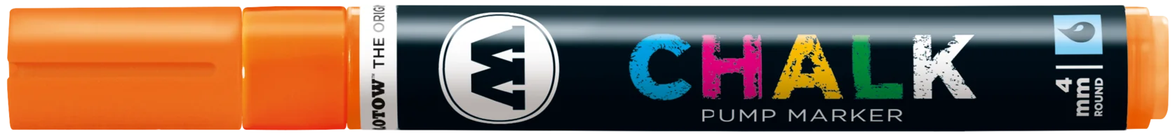 Kreidemarker mit austauschbarer 4 mm Spitze perfekt für temporäre Anwendungen auf nahezu allen nicht saugenden und glatten Untergründen oder Kunstanwendungen auf Leinwand. Schreibfarbe: neonorange. Geeignet für Schaufenster, Spiegel, Glas, Fließen, Metall, Plastik, Schiefertafeln und Leinwand. Erhältlich in 10 Farben. Wiederbefüllbar mit allen CHALK Refills. Made in Germany.