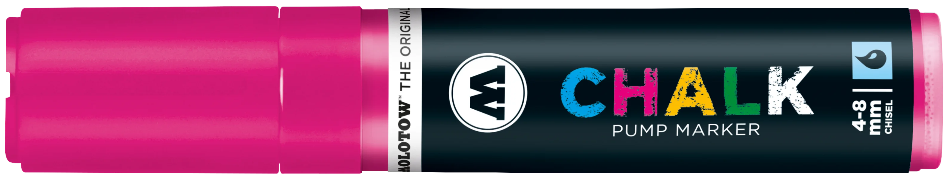 Kreidemarker mit austauschbarer 4-8 mm Spitze perfekt für temporäre Anwendungen auf nahezu allen nicht saugenden und glatten Untergründen oder Kunstanwendungen auf Leinwand. Schreibfarbe: neonpink. Geeignet für Schaufenster, Spiegel, Glas, Fließen, Metall, Plastik, Schiefertafeln und Leinwand. Erhältlich in 10 Farben. Wiederbefüllbar mit allen CHALK Refills. Made in Germany.