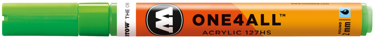 Acrylmarker für kreatives Arbeiten mit austauschbarer, ultra robuster 2 mm Crossover Spitze für künstlerische Freiheit in allen Belangen. Schreibfarbe: Neongrün fluoreszierend. ONE4ALL - Die Referenz-Klasse im Markerbereich. Unerreichte Deckkraft, leuchtende Farben, Flowmaster-Ventil zur aktiven Farbkontrolle bis hin zur patentierten Kapillartechnik. Wiederbefüllbar mit allen One4All Refills. Seidenmatt, hochdeckend, permanent, schnelltrocknend und gute UV-Beständigkeit. Auf nahezu allen Untergründen anwendbar. Bedingt mischbar. All dies machte die ONE4ALL Marker-Serie zum Shootingstar im Kunst- und Design-Bereich. Erhältlich in 50 Farben. Made in Germany.
