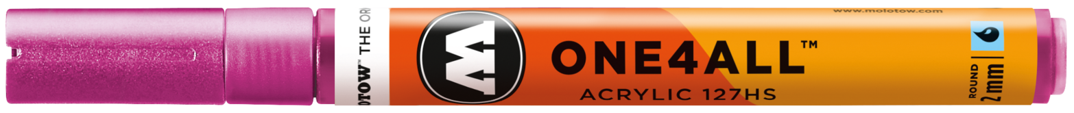 Acrylmarker für kreatives Arbeiten mit austauschbarer, ultra robuster 2 mm Crossover Spitze für künstlerische Freiheit in allen Belangen. Schreibfarbe: Metallic pink. ONE4ALL - Die Referenz-Klasse im Markerbereich. Unerreichte Deckkraft, leuchtende Farben, Flowmaster-Ventil zur aktiven Farbkontrolle bis hin zur patentierten Kapillartechnik. Wiederbefüllbar mit allen One4All Refills. Seidenmatt, hochdeckend, permanent, schnelltrocknend und gute UV-Beständigkeit. Auf nahezu allen Untergründen anwendbar. Bedingt mischbar. All dies machte die ONE4ALL Marker-Serie zum Shootingstar im Kunst- und Design-Bereich. Erhältlich in 50 Farben. Made in Germany.
