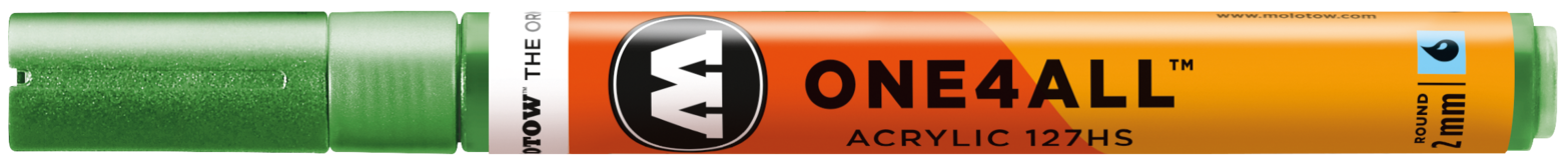 Acrylmarker für kreatives Arbeiten mit austauschbarer, ultra robuster 2 mm Crossover Spitze für künstlerische Freiheit in allen Belangen. Schreibfarbe: Metallic hellgrün. ONE4ALL - Die Referenz-Klasse im Markerbereich. Unerreichte Deckkraft, leuchtende Farben, Flowmaster-Ventil zur aktiven Farbkontrolle bis hin zur patentierten Kapillartechnik. Wiederbefüllbar mit allen One4All Refills. Seidenmatt, hochdeckend, permanent, schnelltrocknend und gute UV-Beständigkeit. Auf nahezu allen Untergründen anwendbar. Bedingt mischbar. All dies machte die ONE4ALL Marker-Serie zum Shootingstar im Kunst- und Design-Bereich. Erhältlich in 50 Farben. Made in Germany.