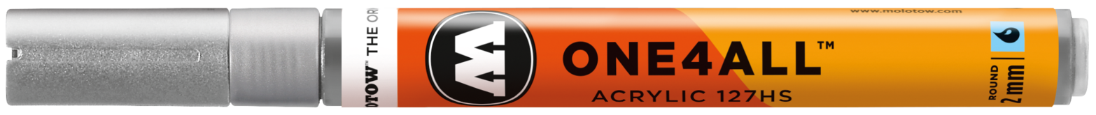 Acrylmarker für kreatives Arbeiten mit austauschbarer, ultra robuster 2 mm Crossover Spitze für künstlerische Freiheit in allen Belangen. Schreibfarbe: Metallic silber. ONE4ALL - Die Referenz-Klasse im Markerbereich. Unerreichte Deckkraft, leuchtende Farben, Flowmaster-Ventil zur aktiven Farbkontrolle bis hin zur patentierten Kapillartechnik. Wiederbefüllbar mit allen One4All Refills. Seidenmatt, hochdeckend, permanent, schnelltrocknend und gute UV-Beständigkeit. Auf nahezu allen Untergründen anwendbar. Bedingt mischbar. All dies machte die ONE4ALL Marker-Serie zum Shootingstar im Kunst- und Design-Bereich. Erhältlich in 50 Farben. Made in Germany.