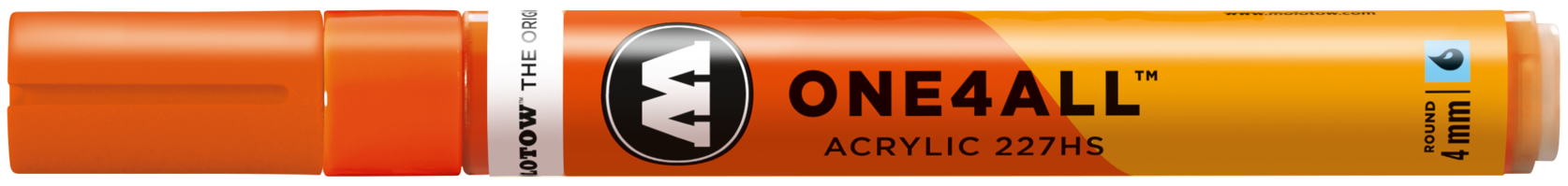Acrylmarker für kreatives Arbeiten mit austauschbarer, 4 mm Spitze für künstlerische Freiheit in allen Belangen. Schreibfarbe: DARE orange. ONE4ALL - Die Referenz-Klasse im Markerbereich. Unerreichte Deckkraft, leuchtende Farben, Flowmaster-Ventil zur aktiven Farbkontrolle bis hin zur patentierten Kapillartechnik. Wiederbefüllbar mit allen One4All Refills. Seidenmatt, hochdeckend, permanent und gute UV-Beständigkeit. Austauschbare Spitze. All dies machte die ONE4ALL Marker-Serie zum Shootingstar im Kunst- und Design-Bereich. Erhältlich in 50 Farben. Made in Germany.