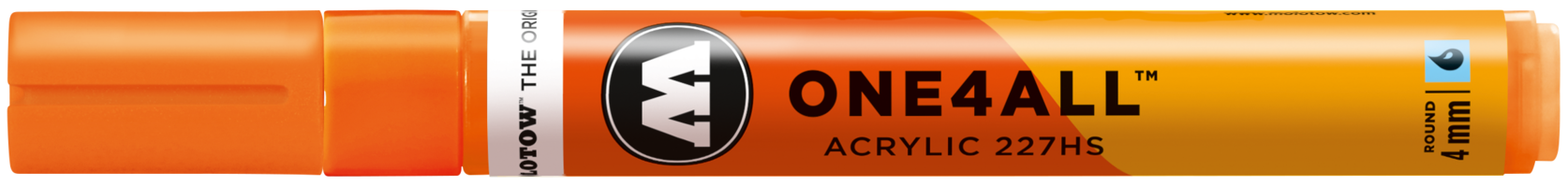Acrylmarker für kreatives Arbeiten mit austauschbarer, 4 mm Spitze für künstlerische Freiheit in allen Belangen. Schreibfarbe: Neonorange fluoreszierend. ONE4ALL - Die Referenz-Klasse im Markerbereich. Fluoresziert unter UV Licht. Unerreichte Deckkraft, leuchtende Farben, Flowmaster-Ventil zur aktiven Farbkontrolle bis hin zur patentierten Kapillartechnik. Wiederbefüllbar mit allen One4All Refills. Seidenmatt, hochdeckend, permanent und gute UV-Beständigkeit. Austauschbare Spitze. All dies machte die ONE4ALL Marker-Serie zum Shootingstar im Kunst- und Design-Bereich. Erhältlich in 50 Farben. Made in Germany.