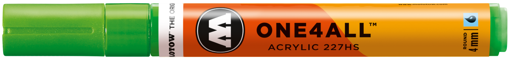 Acrylmarker für kreatives Arbeiten mit austauschbarer, 4 mm Spitze für künstlerische Freiheit in allen Belangen. Schreibfarbe: Neongrün fluoreszierend. Fluoresziert unter UV Licht. ONE4ALL - Die Referenz-Klasse im Markerbereich. Unerreichte Deckkraft, leuchtende Farben, Flowmaster-Ventil zur aktiven Farbkontrolle bis hin zur patentierten Kapillartechnik. Wiederbefüllbar mit allen One4All Refills. Seidenmatt, hochdeckend, permanent und gute UV-Beständigkeit. Austauschbare Spitze. All dies machte die ONE4ALL Marker-Serie zum Shootingstar im Kunst- und Design-Bereich. Erhältlich in 50 Farben. Made in Germany.