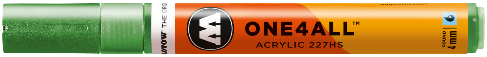 Acrylmarker für kreatives Arbeiten mit austauschbarer, 4 mm Spitze für künstlerische Freiheit in allen Belangen. Schreibfarbe: Metallic hellgrün. ONE4ALL - Die Referenz-Klasse im Markerbereich. Unerreichte Deckkraft, leuchtende Farben, Flowmaster-Ventil zur aktiven Farbkontrolle bis hin zur patentierten Kapillartechnik. Wiederbefüllbar mit allen One4All Refills. Seidenmatt, hochdeckend, permanent und gute UV-Beständigkeit. Austauschbare Spitze. All dies machte die ONE4ALL Marker-Serie zum Shootingstar im Kunst- und Design-Bereich. Erhältlich in 50 Farben. Made in Germany.