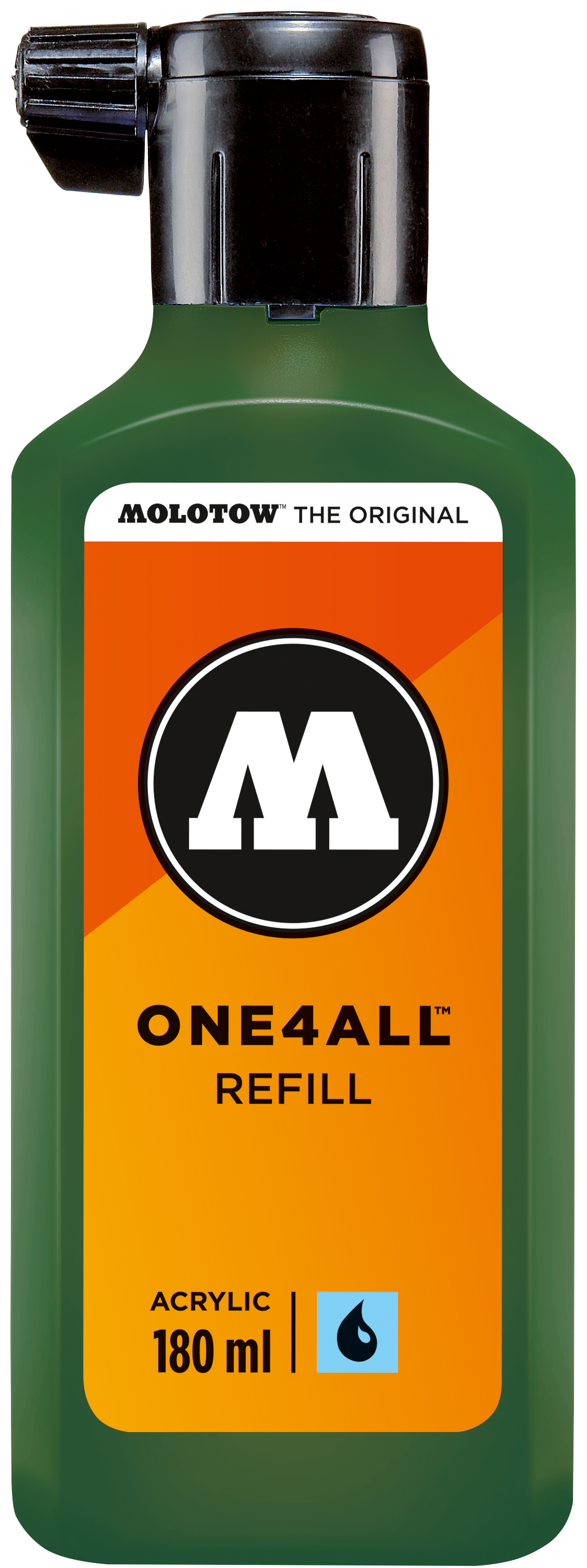 Nachfülleinheit 180 ml Tinte auf Wasserbasis passend zur One4All Serie. Schreibfarbe: future green. Unerreichte Deckkraft und leuchtende Farben. Verdünnbar mit Wasser oder Aceton (1-3%). Seidenmatt, hochdeckend, permanent, schnelltrocknend und gute UV-Beständigkeit .Auf nahezu allen Untergründen anwendbar. Bedingt mischbar. All dies machte die ONE4ALL Marker-Serie zum Shootingstar im Kunst- und Design-Bereich. Erhältlich in 44 Farben.