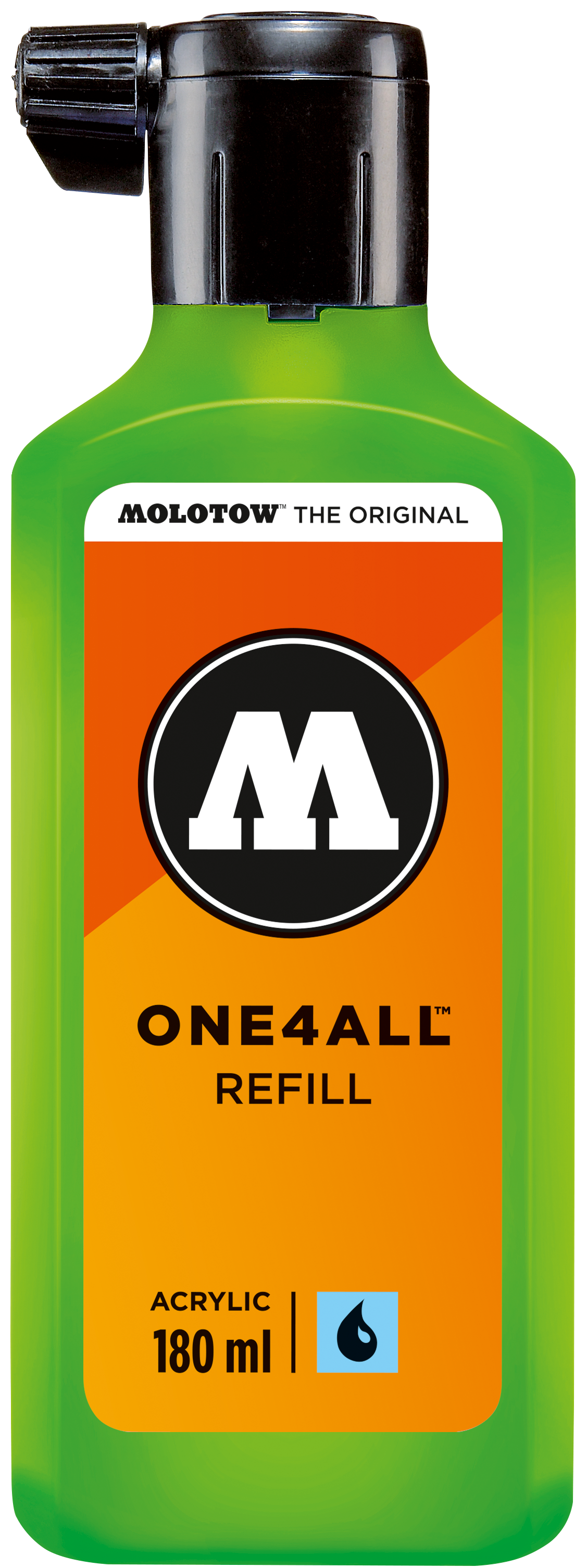 Nachfülleinheit 180 ml Tinte auf Wasserbasis passend zur One4All Serie. Schreibfarbe: neongrün fluoreszierend. Unerreichte Deckkraft und leuchtende Farben. Verdünnbar mit Wasser oder Aceton (1-3%). Seidenmatt, hochdeckend, permanent, schnelltrocknend und gute UV-Beständigkeit .Auf nahezu allen Untergründen anwendbar. Bedingt mischbar. All dies machte die ONE4ALL Marker-Serie zum Shootingstar im Kunst- und Design-Bereich. Erhältlich in 44 Farben.