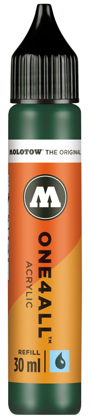 Nachfülleinheit 30 ml Tinte auf Wasserbasis passend zur One4All Serie. Schreibfarbe: MISTER GREEN. Unerreichte Deckkraft und leuchtende Farben. Verdünnbar mit Wasser oder Aceton (1-3%). Seidenmatt, hochdeckend, permanent, schnelltrocknend und gute UV-Beständigkeit .Auf nahezu allen Untergründen anwendbar. Bedingt mischbar. All dies machte die ONE4ALL Marker-Serie zum Shootingstar im Kunst- und Design-Bereich. Erhältlich in 50 Farben.