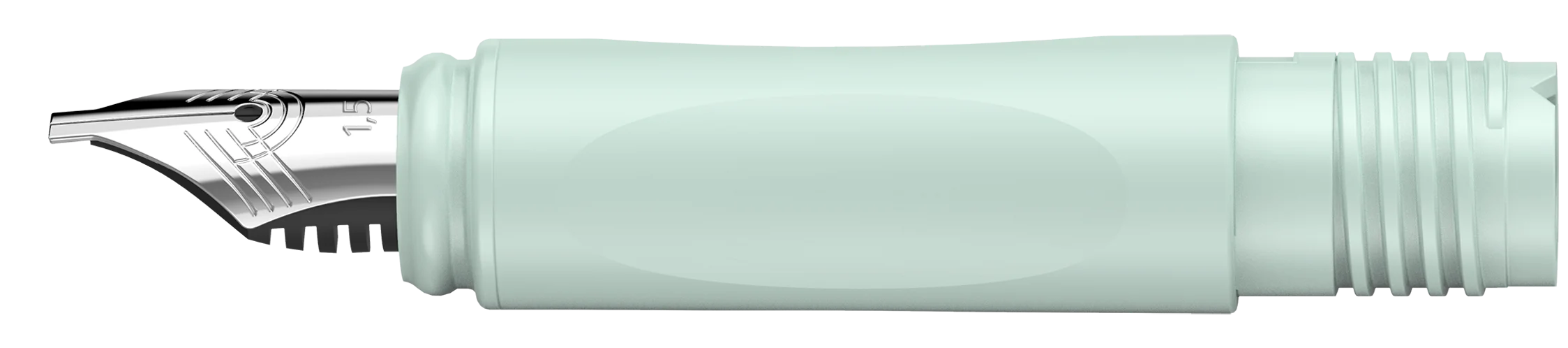 Vorderteil für den Kalligrafiefüller Callissima mit ergonomisch gummiertem Griffprofil und Edelstahlfeder. Gehäusefarbe \"mint\" und Strichstärke 1,5 mm für ein ausdrucksstarkes Schriftbild. Geeignet für Rechts- und Linkshänder.