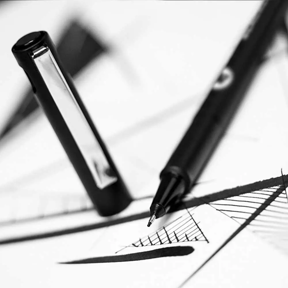 Zum Skizzieren, für die Schule, für Outlines oder als einfacher Fineliner: die Blackliner Made in Germany haben eine dokumentenechte Tinte auf Wasserbasis und sind obendrein wasser- und chemikalienbeständig. Die robusten, metallgefassten Spitzen von 0.05 mm - 1 mm, Chisel und Round garantieren feine und exakte Linien und sind somit ideal für Outlines geeignet. Die Blackliner sind hochwertig ausgestattet und haben eine griffige, matte Oberfläche.