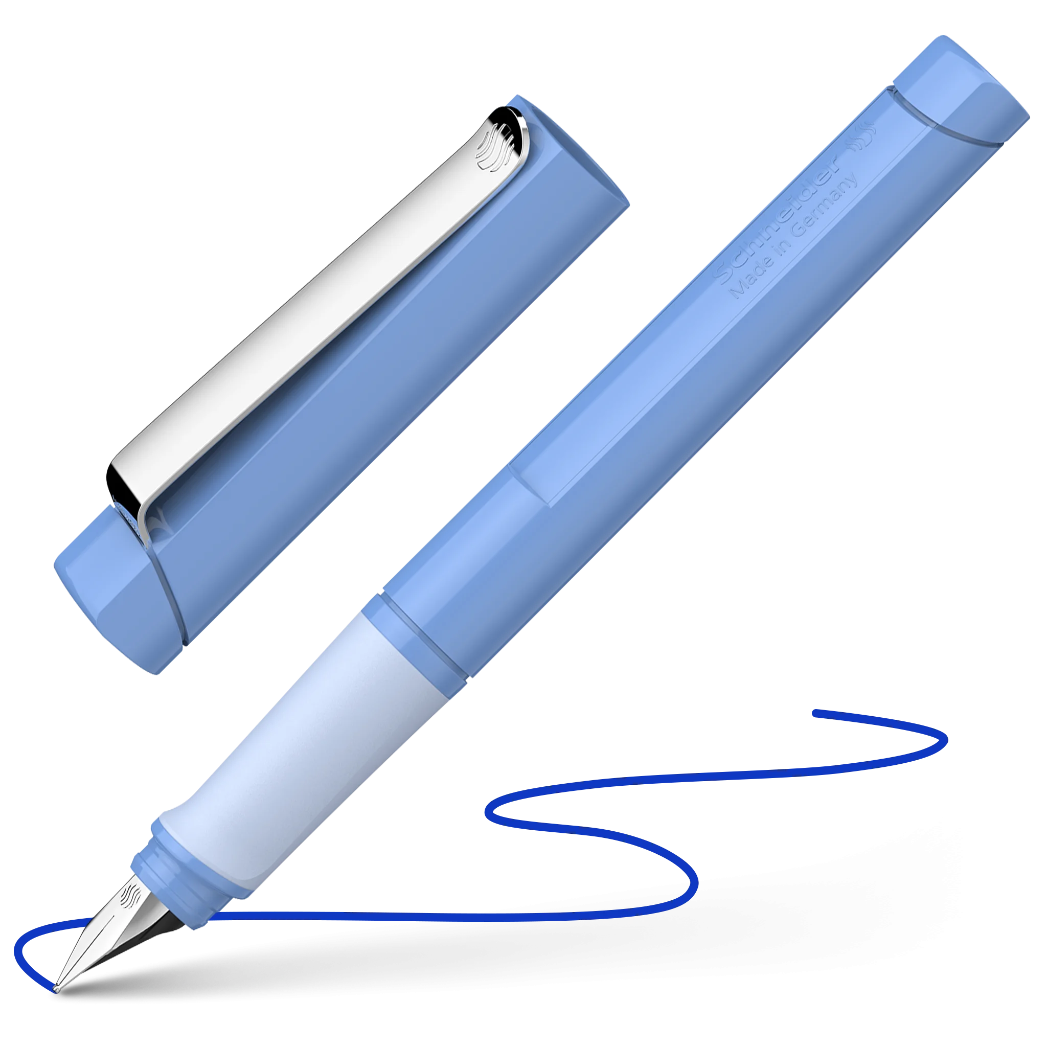 Base ist der ideale Begleiter für Schule, Uni oder Büro. Der moderne Füllhalter für Rechtshänder in Farbe \"sky blue\" hat eine hochwertige, stabile Edelstahlfeder mit Iridiumkorn und liefert ein außergewöhnlich weiches, sauberes Schriftbild in Strichstärke M für eine normale Schrift. Das gummierte und ergonomisch geformte Griffstück ermöglicht einen sicheren Halt und ermüdungsfreies Schreiben. Die Kappe besitzt einen stabilen, hochglanzverchromten Metallclip. Der Füllhalter ist passend für Standard-Tintenpatronen und Konverter und inkl. 1 Standard-Tintenpatrone königsblau löschbar. Für Linkshänder gibt es die spiegelverkehrt geformte L-Version.