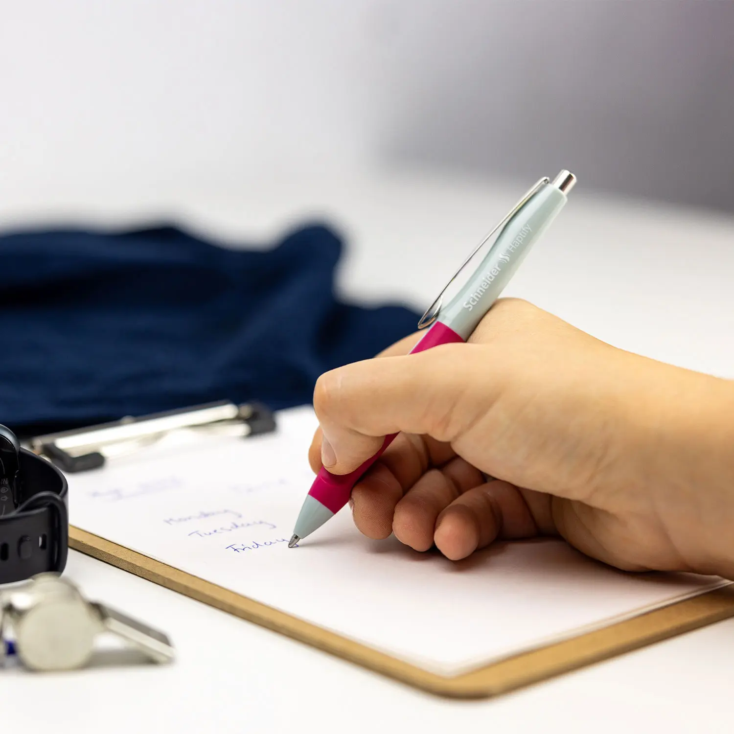Premium-Großraummine aus Metall mit Viscoglide®-Technologie für außergewöhnlich weiches und gleitendes Schreiben. ISO-Format G2. Schreibfarbe schwarz. Strichstärke Medium (M). Dokumentenecht nach ISO 12757-2. Die verschleißfeste Edelstahlspitze garantiert, dass der große Pastenvorrat vollständig und schmierfrei genutzt werden kann. Die Schrift trocknet schnell - auch auf glattem Papier - und bleibt sogar bei anschließendem Markieren mit Textmarkern wischfest. Passend in alle Schneider-Kugelschreiber mit Plug+Play-System und viele andere Fabrikate.