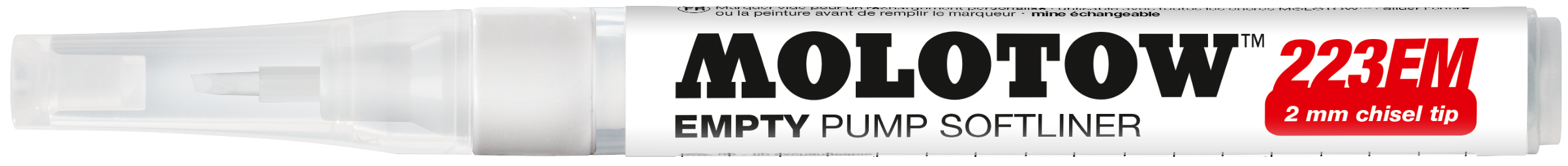 Leermarker mit austauschbarer 2 mm Pinselspitze, für absolute künstlerische Freiheit. Ideal zum nachfüllen, Farben mischen und Farben lagern. Perfekt in Kombination mit Molotow Refills und den Molotow Refill Extensions. Made in Germany.