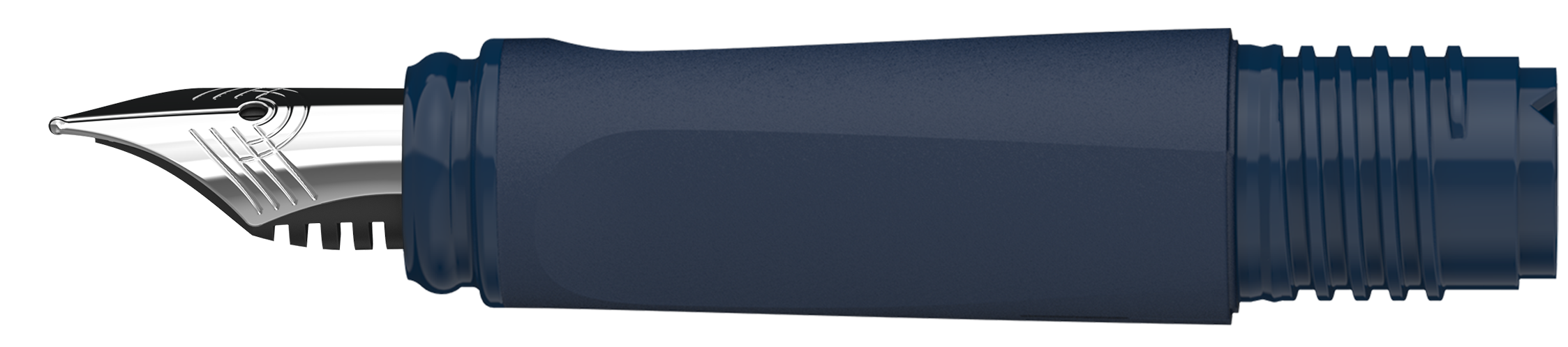 Ersatz-Vorderteil für den Schulfüller Wavy mit, polierter SmartFlow-Edelstahlfeder A mit Korn in mittlerer Strichbreite - für einen gleichmäßigen Tintenfluss und ein extra weiches Schreibgefühl. Das ergonomisch gummierte Griffstück für Rechts- und Linkshänder fördert die richtige Schreibhaltung und die großen Fingeflächen verhindern Druckstellen. Farbe des Griffstücks: dunkelblau.