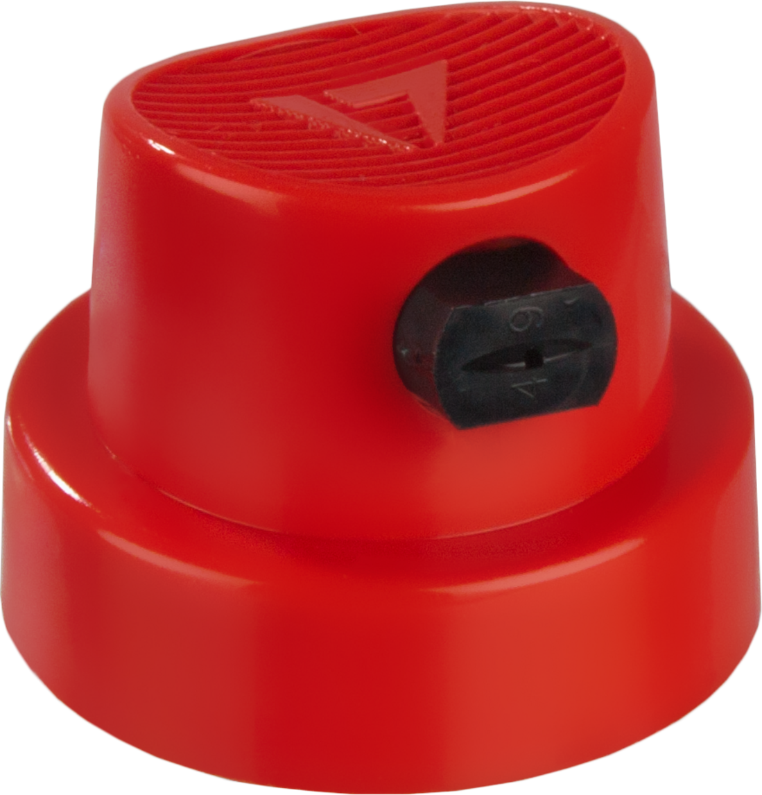 Flachstrahl-Cap \"Artist 2. Farbe: rot/schwarz. Strichbreite: 1,0 - 6,0 cm. Eigenschaften: große Düse (nicht kreisförmig), einstellbar. Druck: breiter, softer Druck. Geeignet für: große Bereiche, große kalligrafische Effekte.