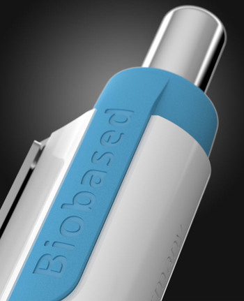 Um den Blauen Engel für Schreibgeräte zu erhalten, müssen u.a. ressourcenschonende Materialien für Produkt und Verpackung verwendet werden. Eine Möglichkeit ist die Verwendung Kunststoffen auf Basis nachwachsender Rohstoffe, wie die biobasierten Kunststoffe, die für den Link-It und den Line-Up verwendet werden. Die Materialien aus nachwachsenden Rohstoffen müssen unter nachhaltigen Bedingungen produziert werden und der biobasierte Anteil der eingesetzten Kunststoffe muss bei mindestens 60% liegen und zertifiziert sein.