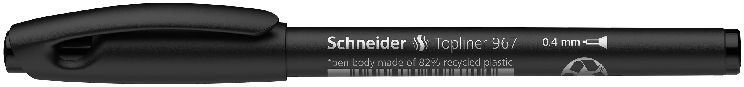 Fineliner con soporte de punta metálica para una escritura fina y exacta, aprox. 0.4 mm. Tinta negra. El cuerpo* del fineliner es respetuoso con el medio ambiente y ahorra recursos, hecho con un 82% de plástico reciclado. Múltiples usos, como para escuela, hobby, trabajo - adecuado también para reglas y plantillas. La tinta “cap off” no se seca incluso si permanece destapado durante 2 ó 3 días. El cuerpo está hecho de PP que no permite la evaporación de la tinta y por ello puede almacenarse durante mucho tiempo.