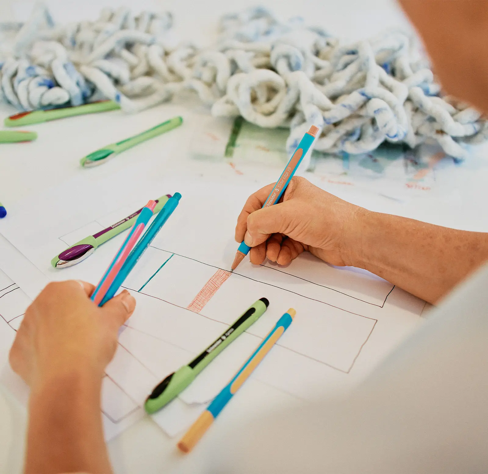 La vista se pierde entre el vibrante verde, el rojo carmesí, el reluciente amarillo o los delicados tonos naturales de la lana, como el blanco, el beige o incluso el antracita oscuro. Observar el almacén del taller es como mirar fijamente un inmenso arcoíris de hebras de lana. ¡Un lugar perfecto para que llegue la inspiración! Cuando los visitantes llegan al telar Simssee, en la localidad de Stephanskirchen, con un esquema de colores en mente, Elke se encarga de ordenar las ideas y darles equilibrio. Su universo gira en torno a patrones, colores, formas y texturas. Como diseñadora experta en patronaje textil, Elke ofrece sus valiosos consejos con sus bocetos de diseño. De este modo, todos los clientes pueden confiar en que cada alfombra fabricada en el taller es una pieza única, diseñada especialmente según la persona que la compra.A diferencia de los artículos baratos fabricados en serie en el Lejano Oriente, la familia Licht valora el uso responsable de los recursos naturales. La lana no es solo una materia prima sostenible y renovable, sino que también fomenta un medio de vida agradable donde las personas se sienten cómodas. La lana nueva de tonos naturales proviene de ovejas de raza local, como la oveja roja de Coburgo, la alpina de cara negra, la oveja negra-marrón del Jura o la oveja tirolesa alpina. Como la paleta de colores naturales es limitada, también se utilizan tintes que cumplen con las normas internacionales sobre sustancias inocuas para tejidos.