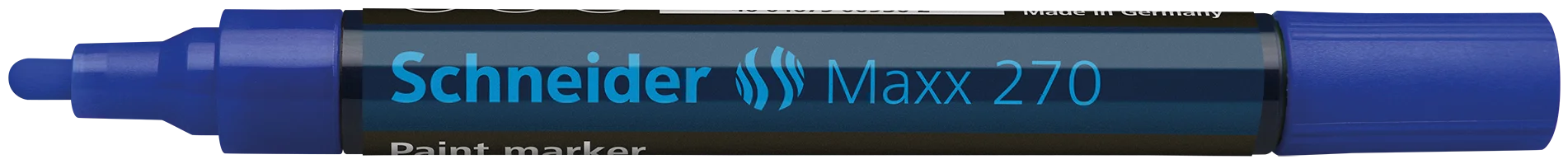 Marcador de laca para un ancho de trazo fuerte 1-3 mm. Tinta azul. Ideal para marcar y decorar casi todos los materiales, como, p. ej. papel, plástico, vidrio, metal, cerámica, cuero, caucho, etc. El resaltado es muy opaco, tiene buena adherencia a superficies pulidas y rugosas y resistencia a la abrasión en las mismas, es resistente a la luz, al agua y a la interperie y resistente a temperaturas de hasta 300 ºC. El flujo de tinta es regulado por válvula y sin tolueno y xileno. Cada marcador es plastificado por separado, con punta sustituible.