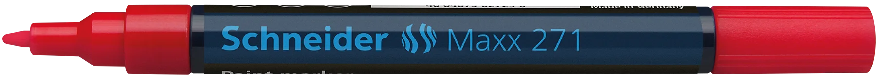 Marcador de laca para un ancho de trazo medio 1-2 mm. Tinta roja. Ideal para marcar y decorar casi todos los materiales, como, p. ej. papel, plástico, vidrio, metal, cerámica, cuero, caucho, etc. El resaltado es muy opaco, tiene buena adherencia a superficies pulidas y rugosas y resistencia a la abrasión en las mismas, es resistente a la luz, al agua y a la interperie y resistente a temperaturas de hasta 300 ºC. El flujo de tinta es regulado por válvula y sin tolueno y xileno. Marcador plastificado por separado.