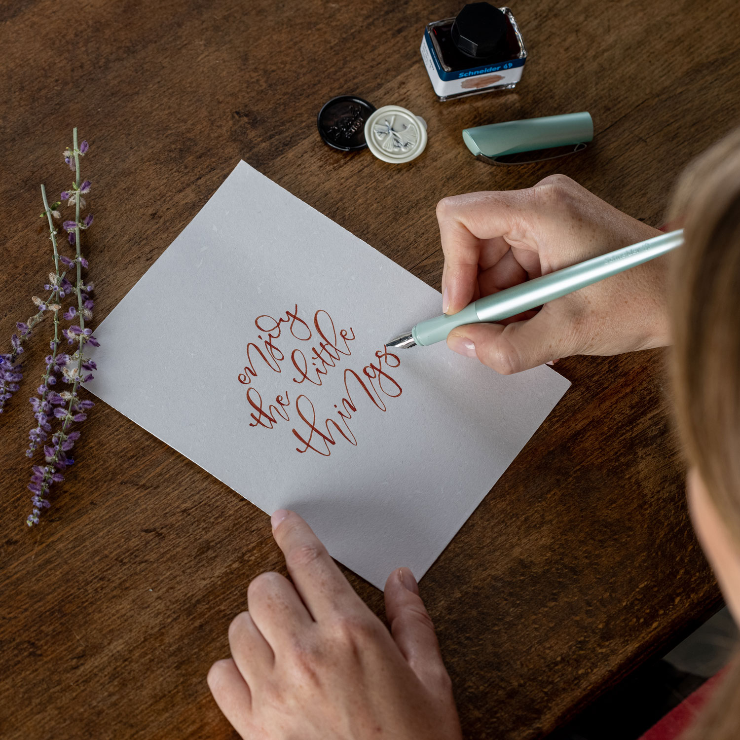 Con Callissima, la escritura caligráfica resultará muy fácil gracias a su plumín plano y liso. La pluma estilográfica de caligrafía es refinada con una superficie ligeramente satinada. El cuerpo delgado y la zona de agarre ergonómica hacen que la pluma sea fácil de sujetar y favorecen una escritura precisa. Perfecto para las personas creativas que desean lucir su estilo de escritura personal en sus diarios, su Bullet Journaling, Handlettering, cartas de felicitación o invitaciones.