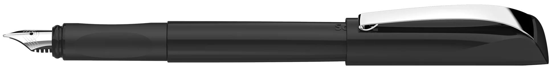 Pluma estilográfica con zona de agarre ergonómica y revestida de caucho y plumín de acero inoxidable M de alta calidad con punto de iridio. Diseño moderno con curvas cautivadoras. La pluma está equipada con un clip metálico estable y con cartuchos estándar de tinta azul royal borrable. Adecuado tanto para zurdos como diestros.