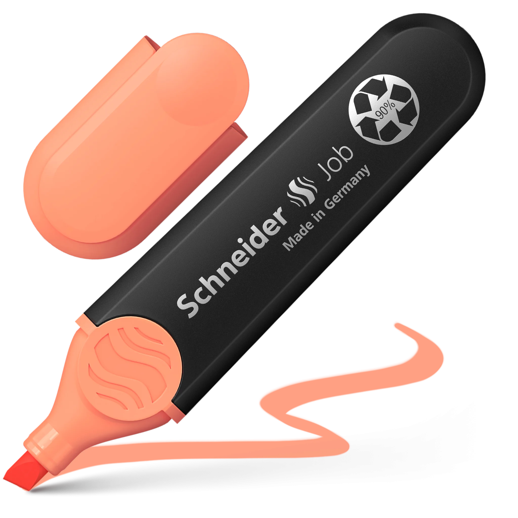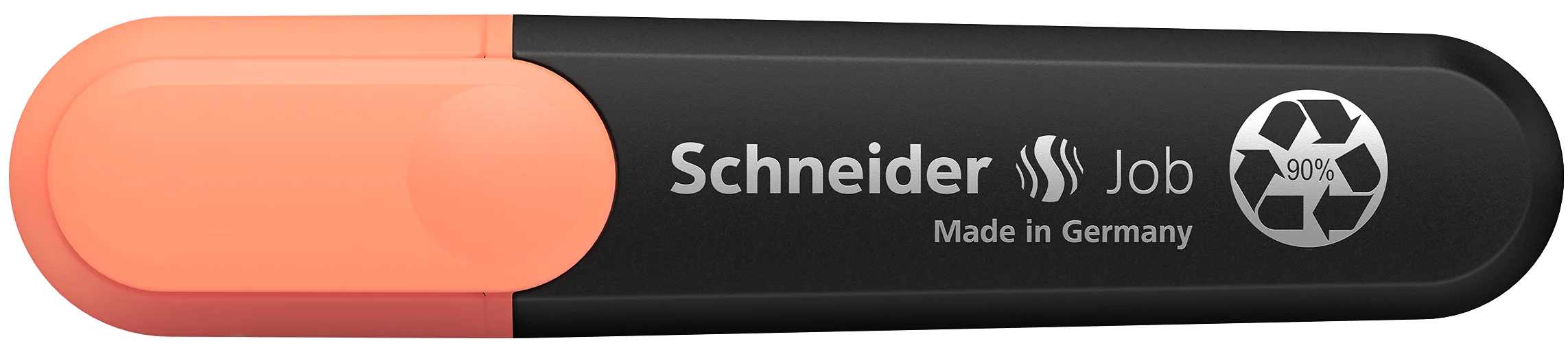 Resaltador con punta biselada 1+5 mm. Tinta melocotón. El resaltador Job es el primer resaltador fabricado con más del 90% de material reciclado que ha recibido el sello ecológico \"Blue Angel\", conocido en todo el mundo. El cuerpo, el depósito interno y la punta están hechos de plástico reciclado. La tinta es de origen biológico. Las tintas universales para papel normal, fotocopia y fax, tienen colores intensos y son muy resistentes a la luz. Esto hace que el resaltador Job sea ideal para su uso en la escuela, la universidad o la oficina y, con su punta biselada, también es perfecto para el trabajo creativo en agendas, o para la caligrafía. Con su gran reserva de tinta, el resaltador marca más de 15.000 palabras.
