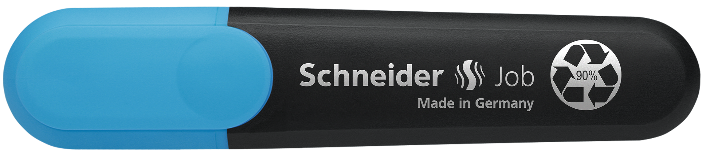 Resaltador con punta biselada 1+5 mm. Tinta azul. El resaltador Job es el primer resaltador fabricado con más del 90% de material reciclado que ha recibido el sello ecológico \"Blue Angel\", conocido en todo el mundo. El cuerpo, el depósito interno y la punta están hechos de plástico reciclado. La tinta es de origen biológico. Las tintas universales para papel normal, fotocopia y fax, tienen colores intensos y son muy resistentes a la luz. Esto hace que el resaltador Job sea ideal para su uso en la escuela, la universidad o la oficina y, con su punta biselada, también es perfecto para el trabajo creativo en agendas, o para la caligrafía. Se puede recargar con el sistema de recarga Maxx 660. Con su gran reserva de tinta, el resaltador marca más de 15.000 palabras.