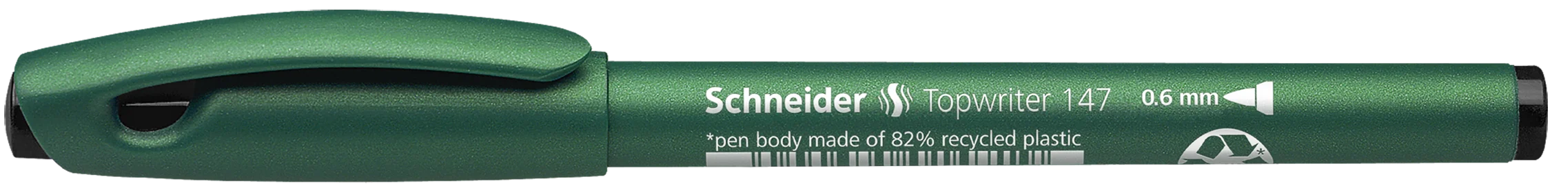 Rotulador con punta de fibra dura y perdurable para una escritura cómoda y sugerente, ancho de trazo aprox. 0.6 mm. Tinta negra. La tinta “cap off” no se seca incluso si permanece destapado durante 2 ó 3 días. El cuerpo* del rotulador es respetuoso con el medio ambiente y ahorra recursos, hecho con un 82% de plástico reciclado. El cuerpo está hecho de PP que no permite la evaporación de la tinta y por ello puede almacenarse durante mucho tiempo.