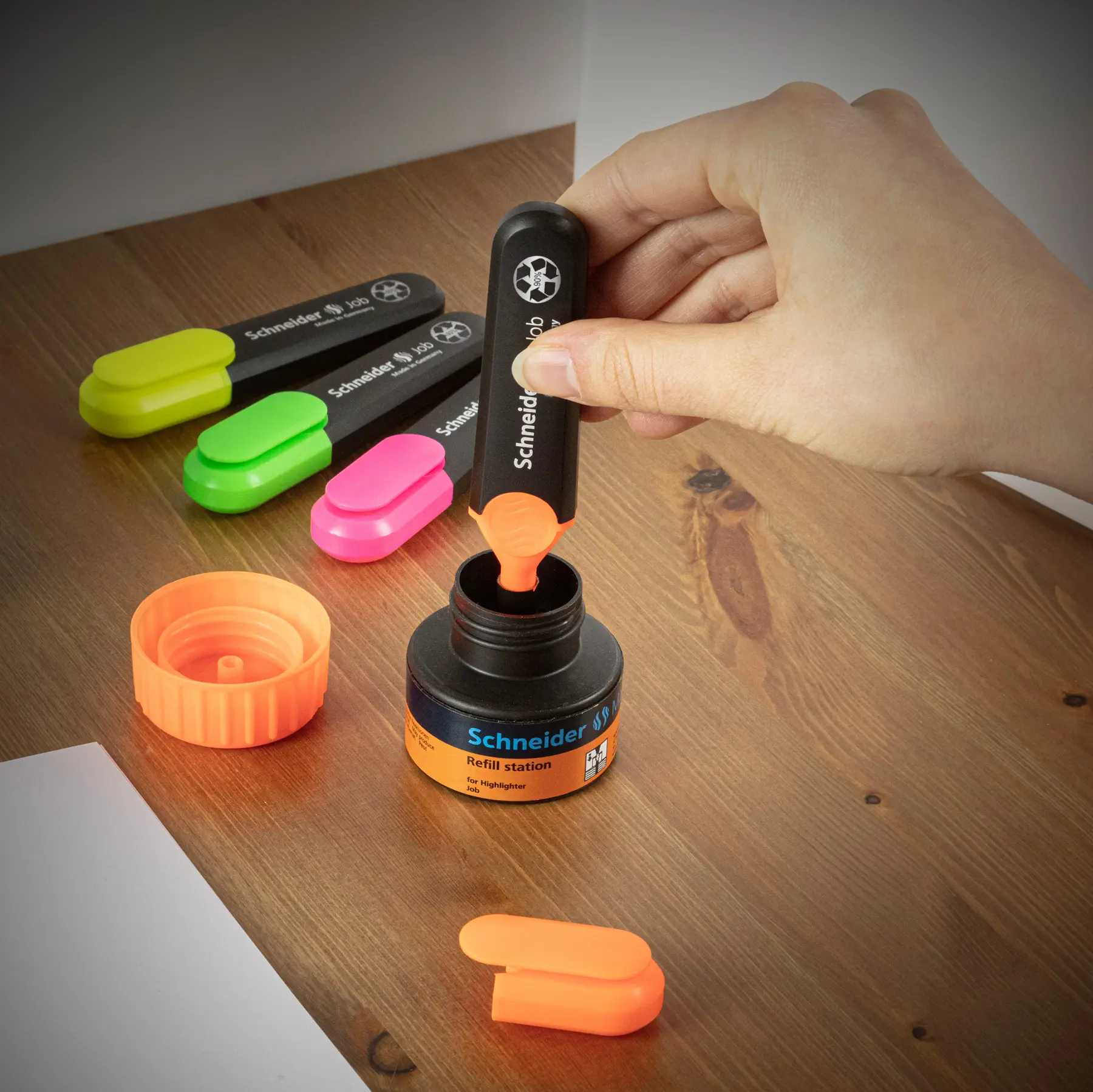 Schneider fait progresser la durabilité de ses produits avec des matériaux innovants tels que le bio-plastique ou le plastique recyclé. Une autre histoire à succès de durabilité a été réalisée par Schneider avec le surligneur éprouvé par des millions d’utilisateurs, et qui est maintenant entièrement fabriqué à partir de composants respectueux de l'environnement et des ressources.