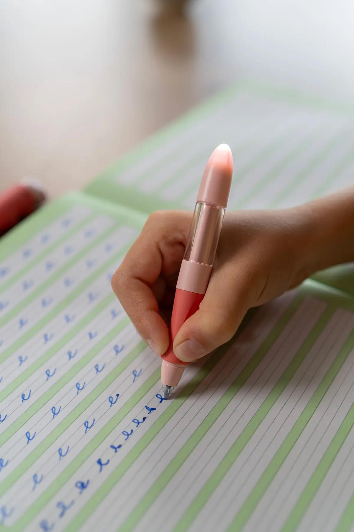 Grip caoutchouté, ergonomique et antidérapant pour une tenue correcte d'écriture, et grandes parties pour doigts qui permettent d’éviter les points de pression gênants et douloureux. Il tient parfaitement dans la main.
