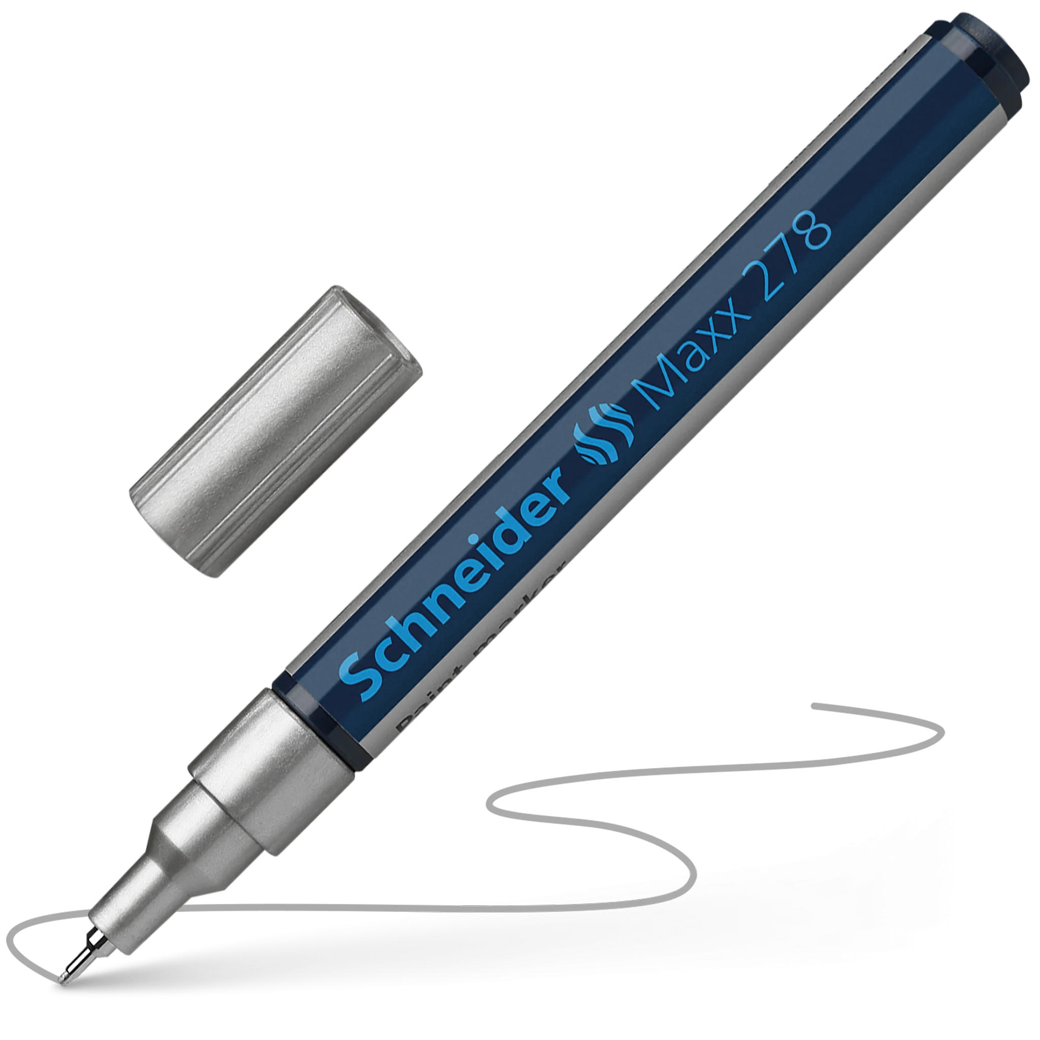 Marqueur peinture avec pointe fine pour épaisseur de trait environ 0.8 mm. Couleur d'encre argente. Idéal pour marquer et décorer des surfaces rugueuses et lisses, comme par ex. papier, plastique, verre, métal, céramique, etc. Fort pouvoir couvrant, forte adhérence et résistance à l´abrasion sur presque tous les matériaux. L'encre est résistante à la lumière, à l´eau et au temps, résistante à la chaleur jusqu´à 300° C et résistante à la corrosion et au lavage. Le débit d´encre est modulé par valve, sans toluène et xylène. Chaque marqueur est soudé sous film, pointe interchangeable.