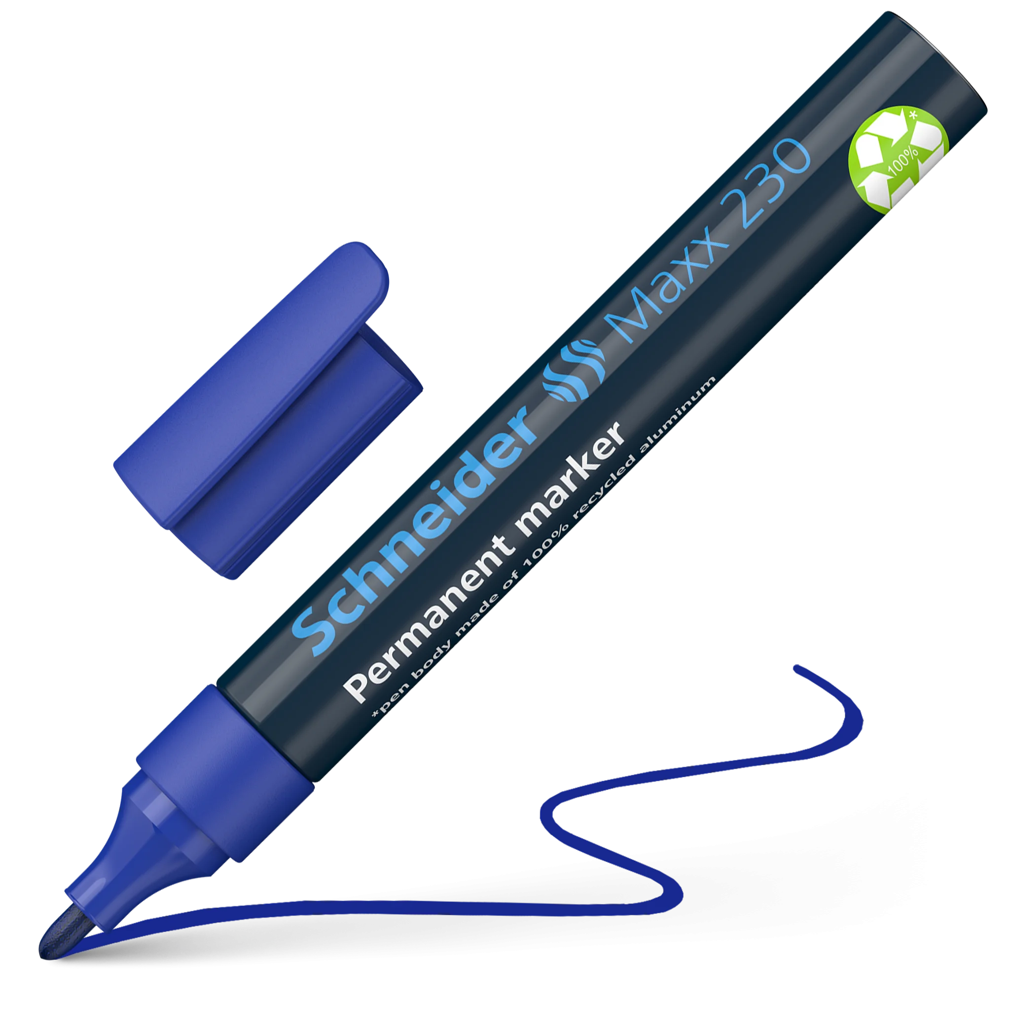 · Marqueur permanent avec corps en aluminium, couleur d'encre bleue· Pointe ogive, épaisseur de trait 1-3 mm