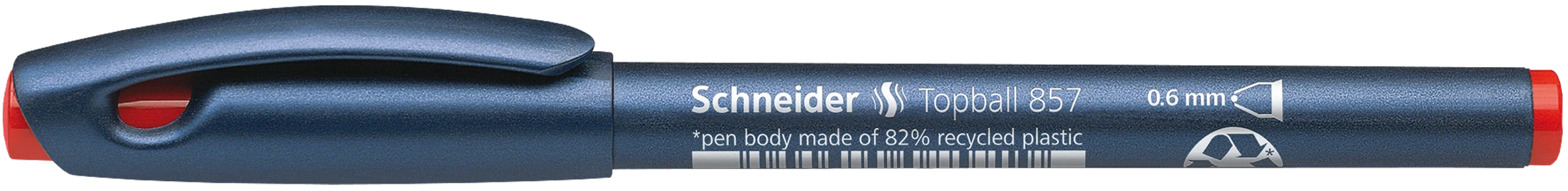 Roller à encre avec pointe conique en métal, épaisseur de trait environ 0.6 mm. Couleur d'encre rouge. Idéal pour une écriture agréable et eficace. Respectueux de l'environnement et des ressources avec un *corps composé à 82 % en plastique recyclé. Le modèle cap-off peut rester ouvert pendant 2-3 jours sans sécher.