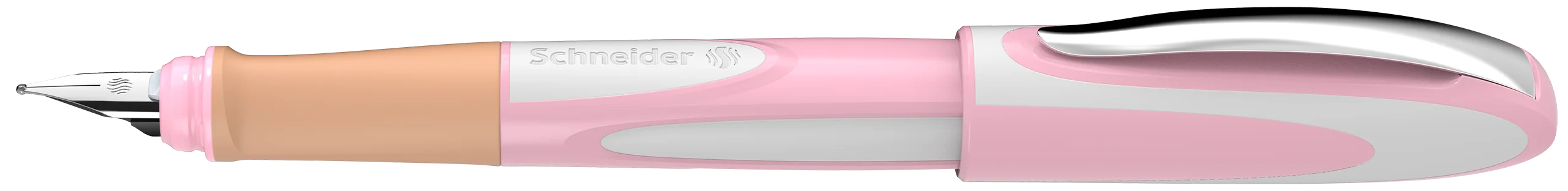 Stylo à plume avec grip ergonomique caoutchouté et plume moyenne M+ en acier inoxydable de haute qualité à pointe iridium. Couleur \"cherry blossom\". Cartouches d'encre standard, bleu royale et effaçable. Partie avant de rechange est disponible. La plume L de forme inverse est disponible pour les gauchers.
