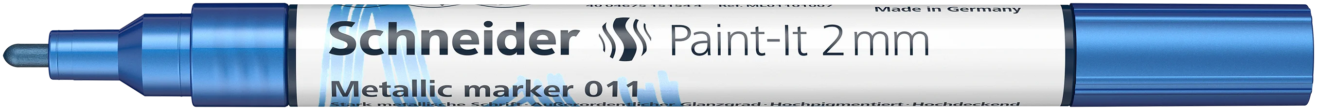 Marcatore a vernice metallizzata per ottenere effetti straordinari. Punta sottile per uno spessore del tratto di circa 2 mm. Colore dell’inchiostro blue metallic. La nuova tecnologia a pigmenti consente un'applicazione del colore pulita e omogenea. Le particelle di alluminio rivestite da pigmenti colorati producono un effetto altamente metallizzato con un livello di lucentezza straordinariamente elevato, anche sotto diverse incidenze di luce. Adatto a molte superfici. I migliori risultati si ottengono su superfici scure e non assorbenti. Vernice ad asciugatura rapida efficacemente controllata da una valvola.