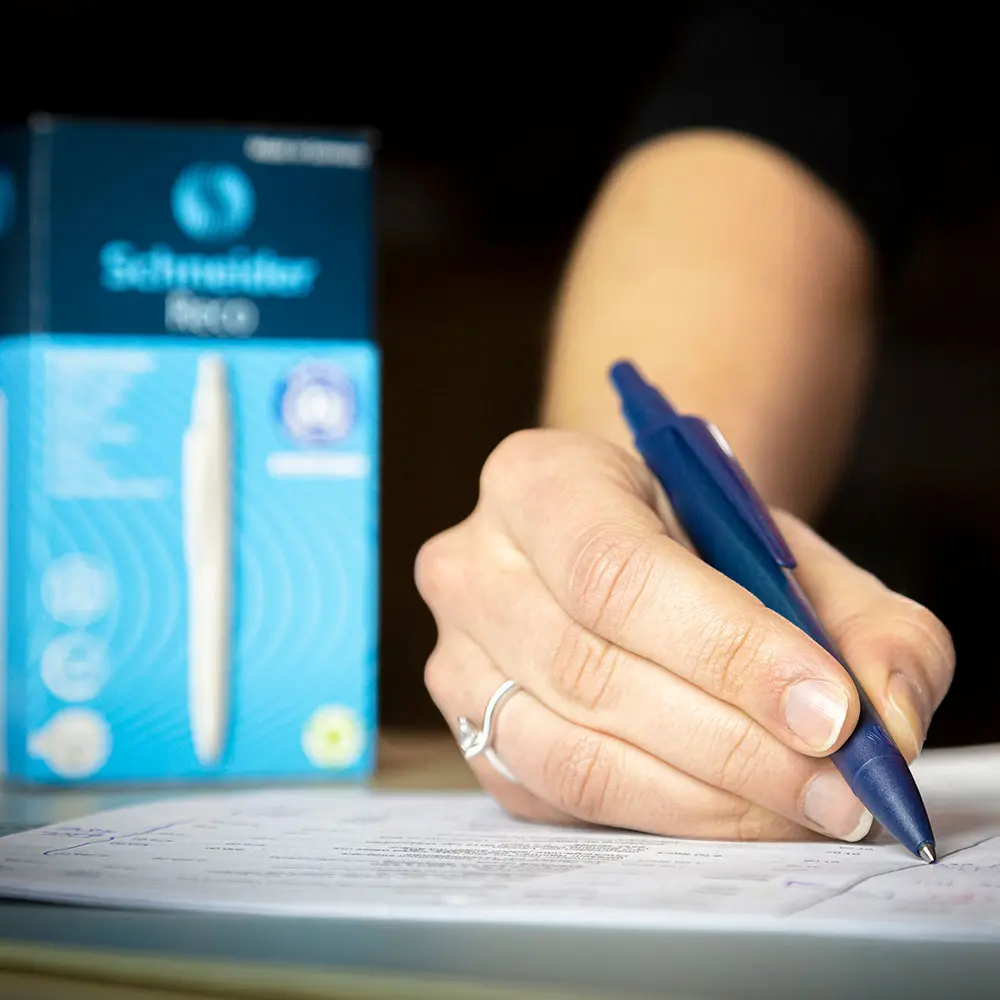 Jumbo refill nel formato ISO G2 con *fusto composto per il 94% da plastica riciclata, con una riduzione di oltre il 70% delle emissioni di CO2 rispetto alla plastica convenzionale. Indelebile a norma ISO 12757-2, tratto Fine (F). Colore inchiostro: blu. Certificato con il marchio di qualità ecologica \"Blue Angel\" adatto per penna a sfera Reco e tutte le penne a sfera Schneider con sistema Plug + Play e molte altre marche. Grazie ad un flusso d'inchiostro piacevolmente leggero e costante, Eco 725 garantisce una scrittura pulita e confortevole. La punta in acciaio inossidabile resistente all'usura garantisce il totale utilizzo dell'inchiostro contenuto e non macchia.
