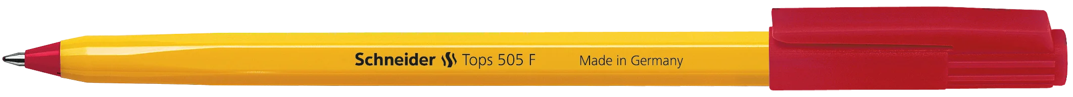 Balpen voorzien van dop met clip die op beide kanten van de pen past. De dop en achterkant geeft de schrijfkleur aan: rood. Lijnbreedte: Fine (F), ca. 0,4 mm. De slijtvaste roestvrij stalen punt garandeert dat de inkt volledig gebruikt kan worden en vlekvrij is.
